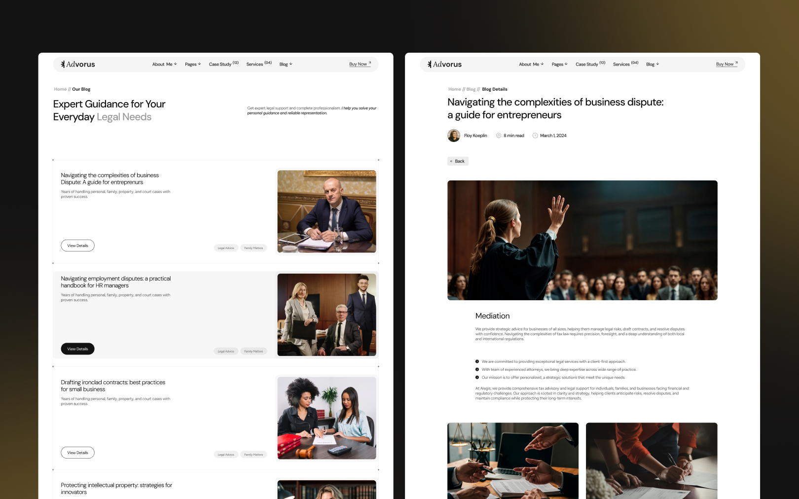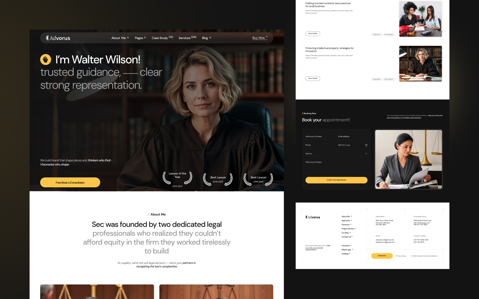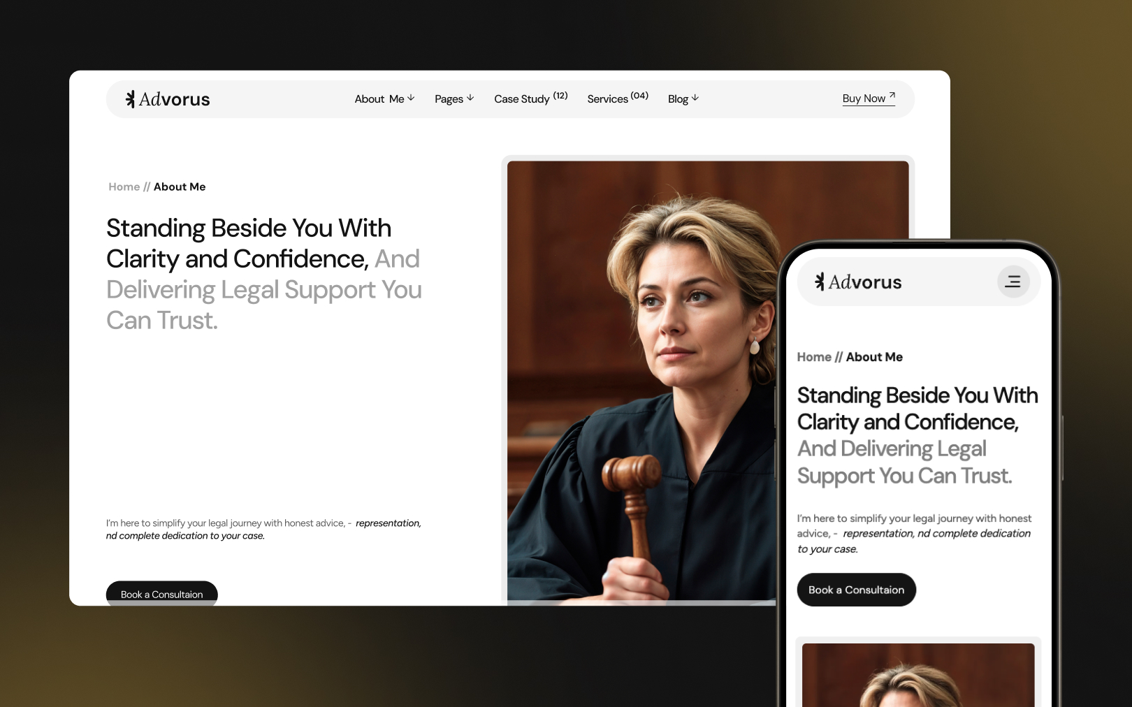 Advorus is a professional lawyer and attorneys portfolio template built for lawyers, legal services, and modern attorneys featuring a clean, trust-focused design that converts visitors into consultations.