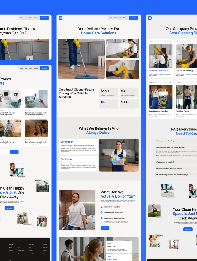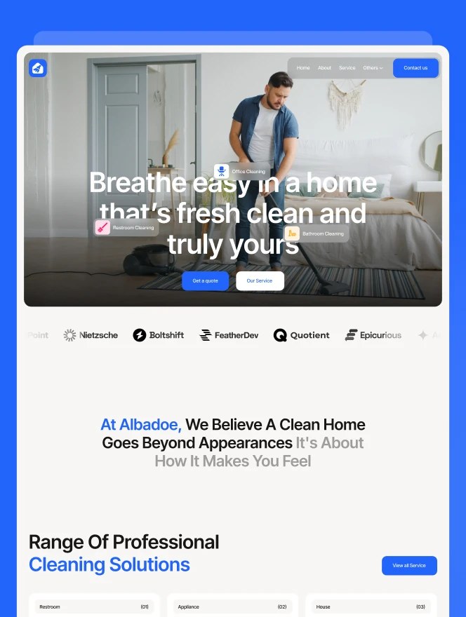 Albadoe is a modern cleaning service website template designed for home and commercial service businesses. It features a clean layout, service sections, booking options, testimonials, and clear call-to-actions to help companies showcase services and attract clients online.
