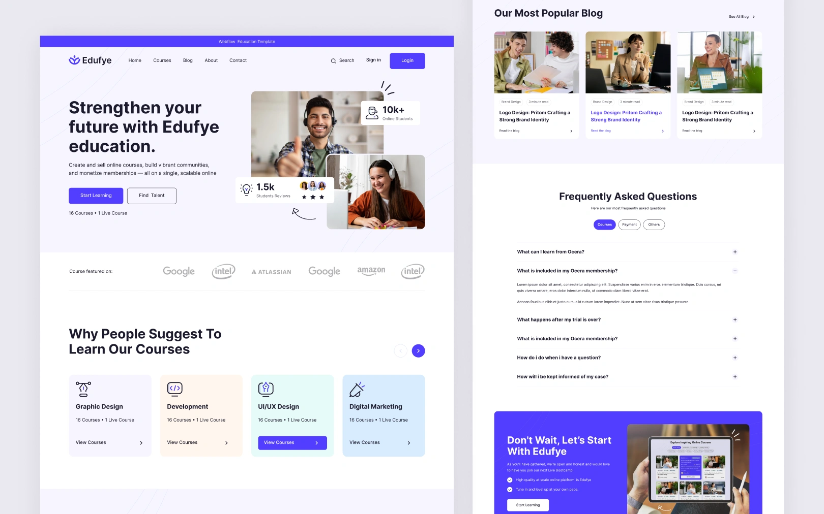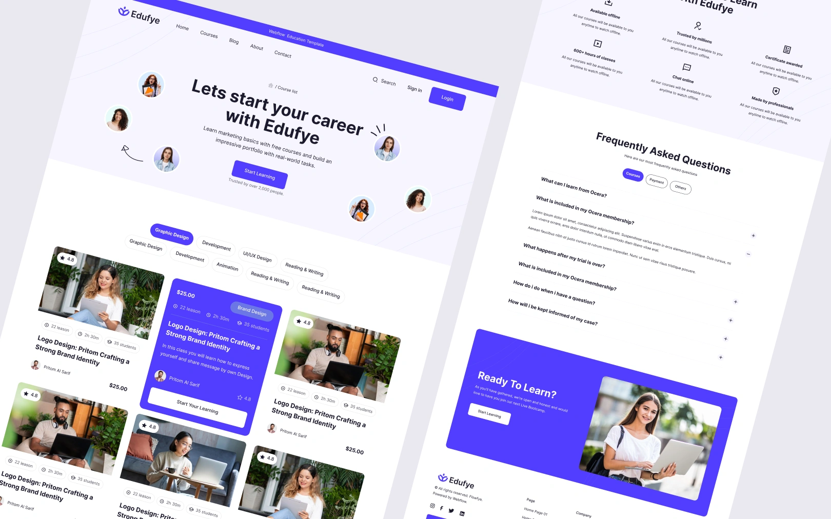 Ocera is the ultimate template designed for online learning platforms. With well thought-out layouts to demonstrate different courses, course details & expert mentors, Ocera can be the ideal design template to start your edtech platform.