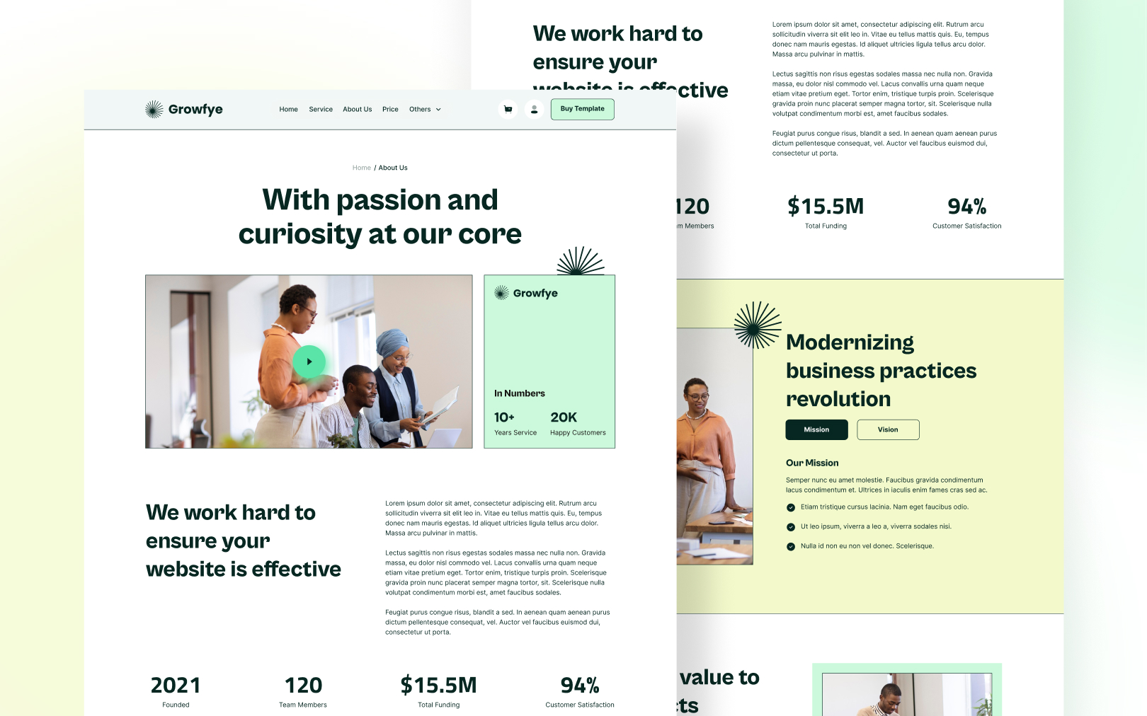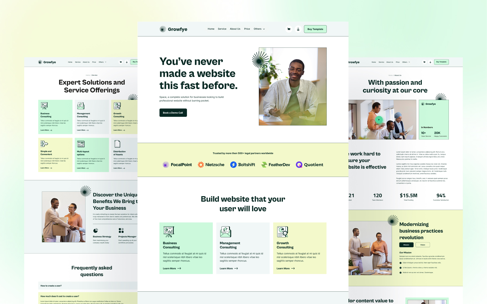 Growfye is a sleek, modern, and fully responsive website template tailored for professional service providers, consulting firms, and corporate businesses. With a clean design, easy customization, and seamless user experience, Growfye helps you showcase expertise, build credibility, and attract clients effortlessly.