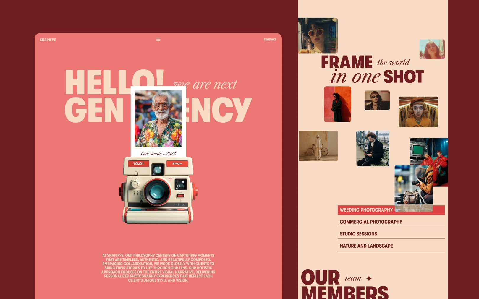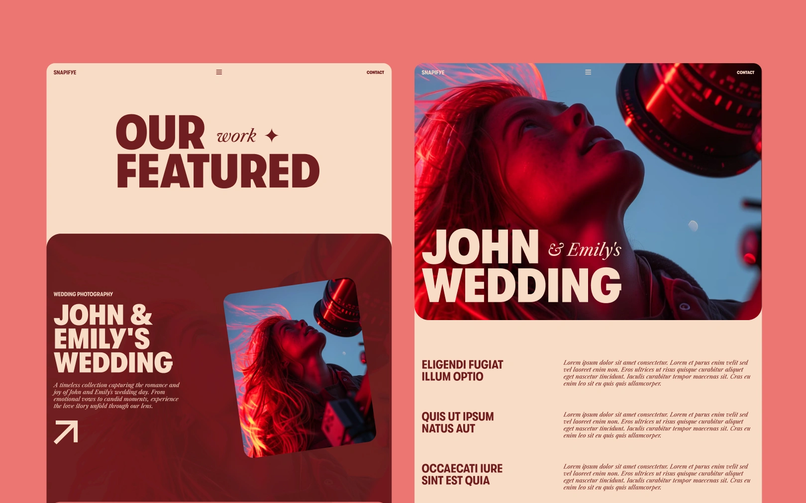 Snapifye is a professional photography agency offering high-quality portrait, event, wedding, and commercial photography. With a modern, responsive website design, showcase your portfolio, attract clients, and highlight your creative vision effectively online.